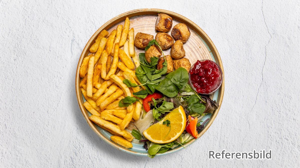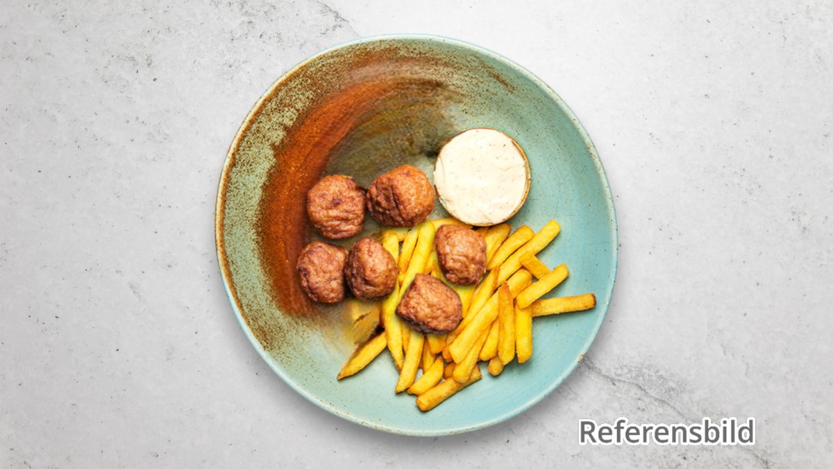 5 St Veganköttbullar och pommes.
