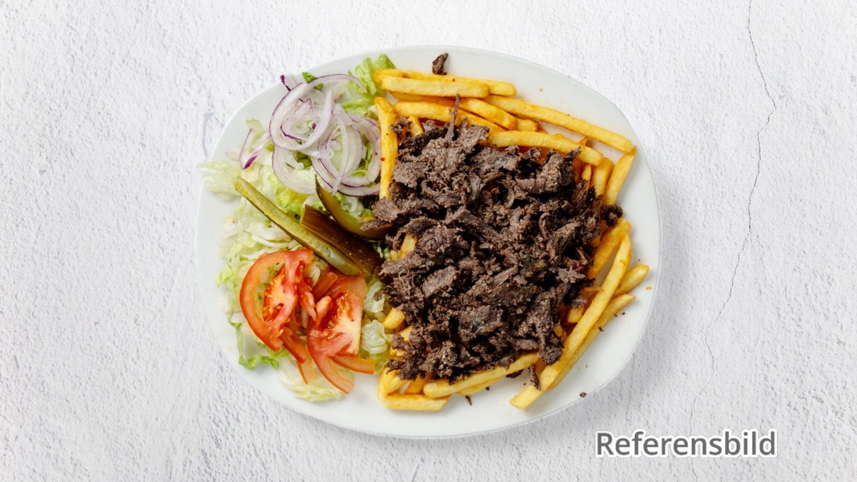 Pommes och grillat shawarma nötkött.