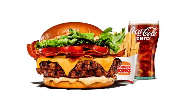 Den ikoniska Bacon King – mer överdådig än någonsin. Vi har gett din favoritburgare en uppgradering värdig en kung. En dubbelburgare med 100% grillat saftigt nötkött, toppad med 4 skivor cheddarost, krämig majonnäs och ketchup, och med en krona av 10 skivor knaprigt, rökigt bacon. Det här är inte bara en burgare, det är en Bacon King-upplevelse!