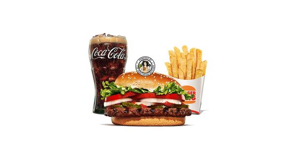 Vad är godare än en Whopper? Nya WHOPPER! För första gången sedan 1957 har receptet förbättrats. Samma fräscha ingredienser, ännu saftigare nötkött och fluffigare bröd. En klassiker med 100 % nötkött och en biff på 113 gram (före tillagning) med dressing och färska grönsaker. Grillad på samma sätt sedan 1957, med ost!
