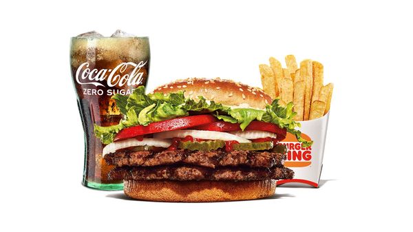 En dubbelburgare med 100% grillat nötkött, färska grönsaker och Big King-sås.