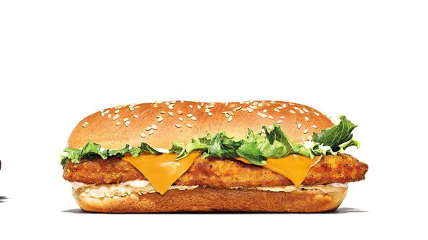 En extra lång burgare med saftig, panerad kycklingfilé, ost, färsk sallad och majonnäs.