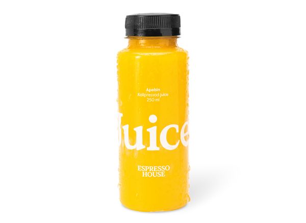 Our own cold-pressed juice with orange.