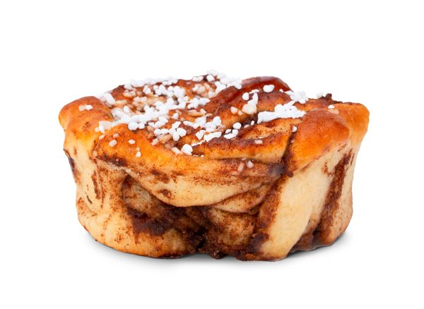Vetebulle bakad med surdeg, fylld med karamellfyllning (24 %). Toppad med pärlsocker och smak av salt karamell
