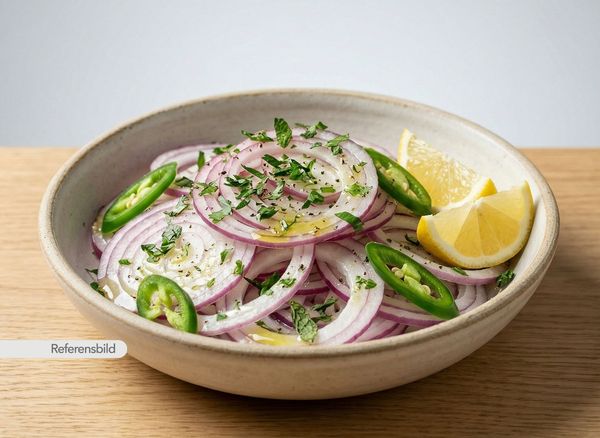 Serveras med färska lök skivor med citron, grön chili och färska örter