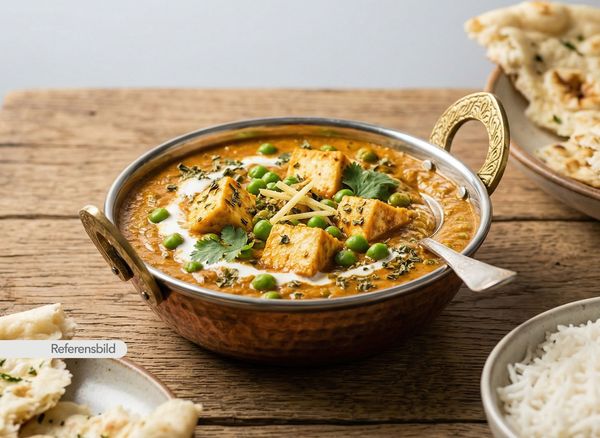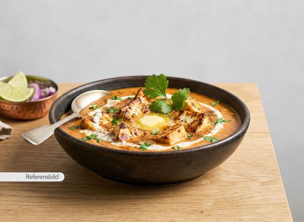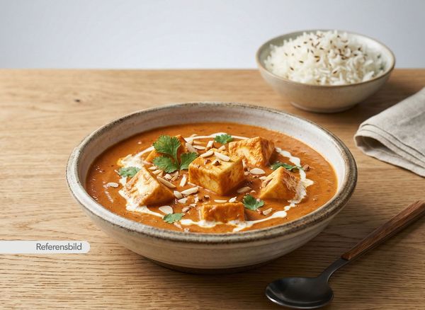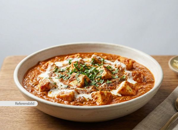 Serveras med krämig, smakrik gryta med hemgjord ost, cashewnötter, tomat, nordIndiska kryddor och örter