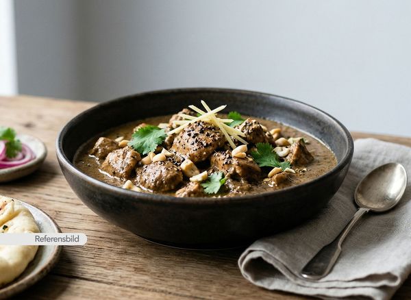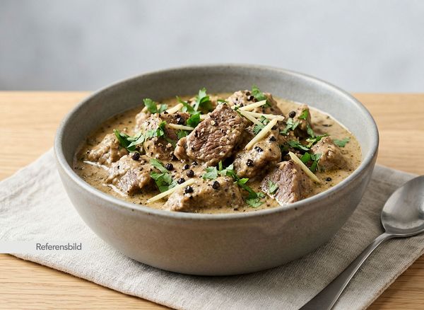 Serveras med populär gryta tillagad med grädde, cashewnötter, garam masala, ingefära, vitlök och svartpeppar