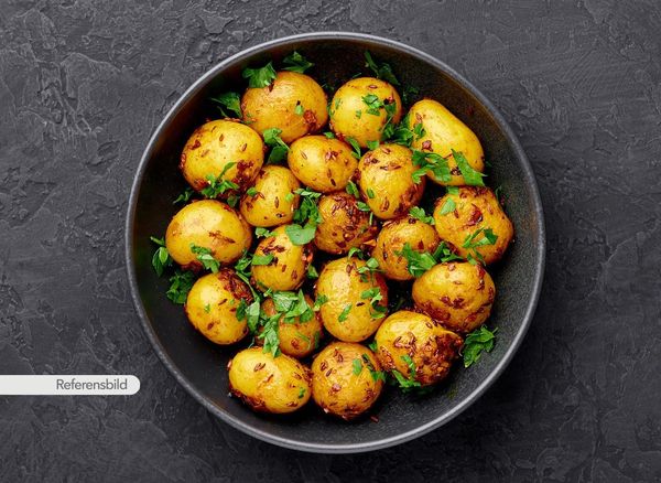 Vegansk. Serveras med potatis sauterad med spiskummin, tomat, röd chili, ingefära, koriander samt Indiska kryddor och örter