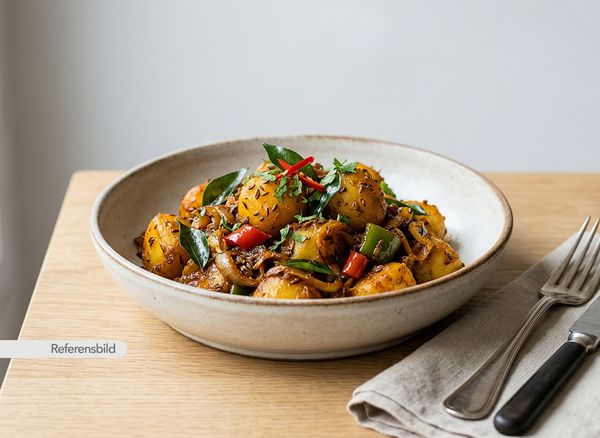 Stark. Serveras med potatis, lök, chili, kummin och Sri Lankan curry masala