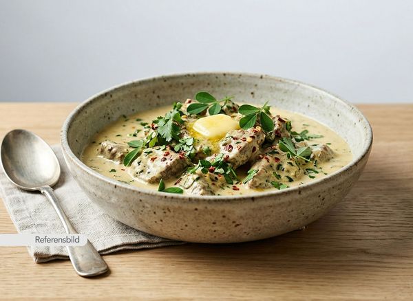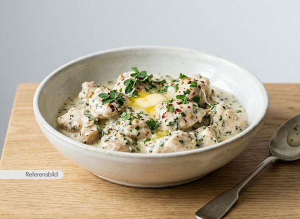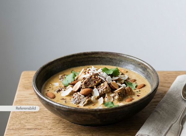 Serveras med gryta med grädde, mandel och kokos