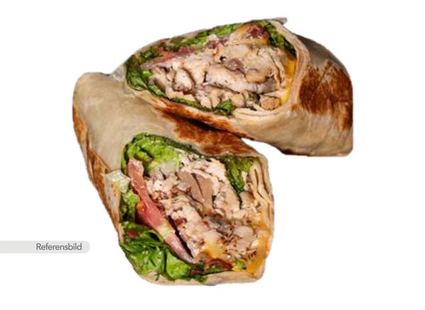 Served with chicken, iceberg lettuce, tomato, cucumber and onion.