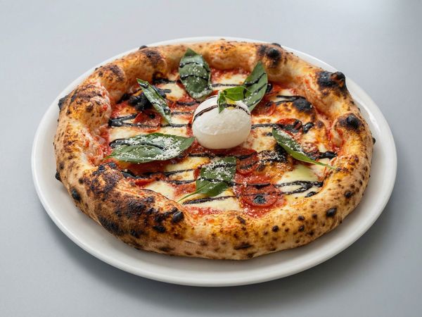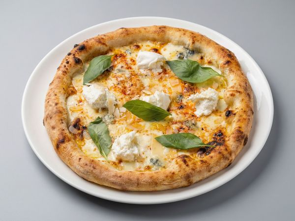 Mascarpone cream, Fior di latte D.O.P, Gorgonzola, Chilli, Honey, pistachio nuts, Parmesan D.O.P, Basil, Olive oil