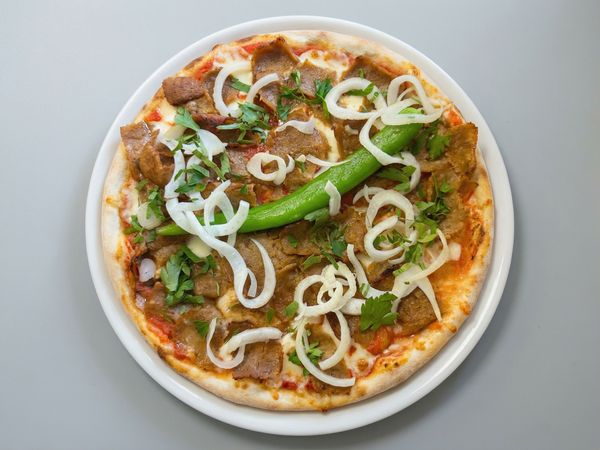 SAN marzano tomat, Fior di latte, kebab(nött), picklad fänkål, grön peppar, persilja, vitlök sås