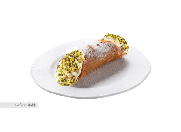 Friterade rör fyllda med krämig pistagefyllning, toppade med nötter och socker.