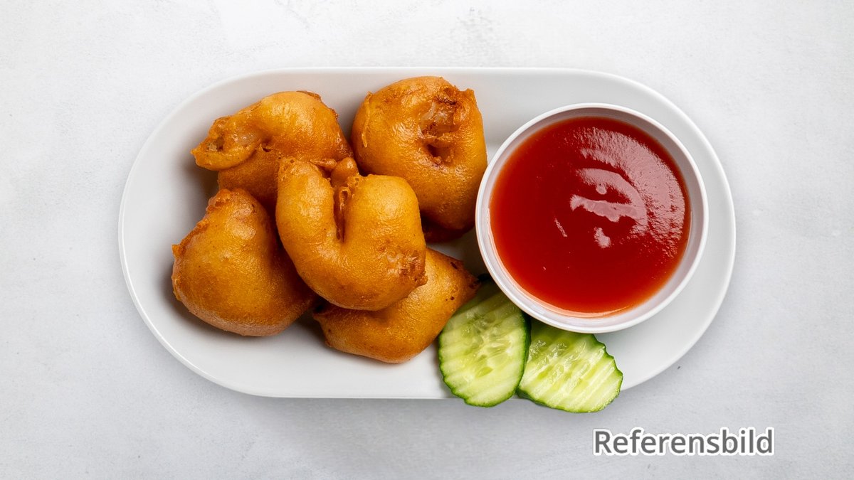 Välj mellan sötsur sås eller currysås. Tillval: Sås, Extra tillbehör, Dryck