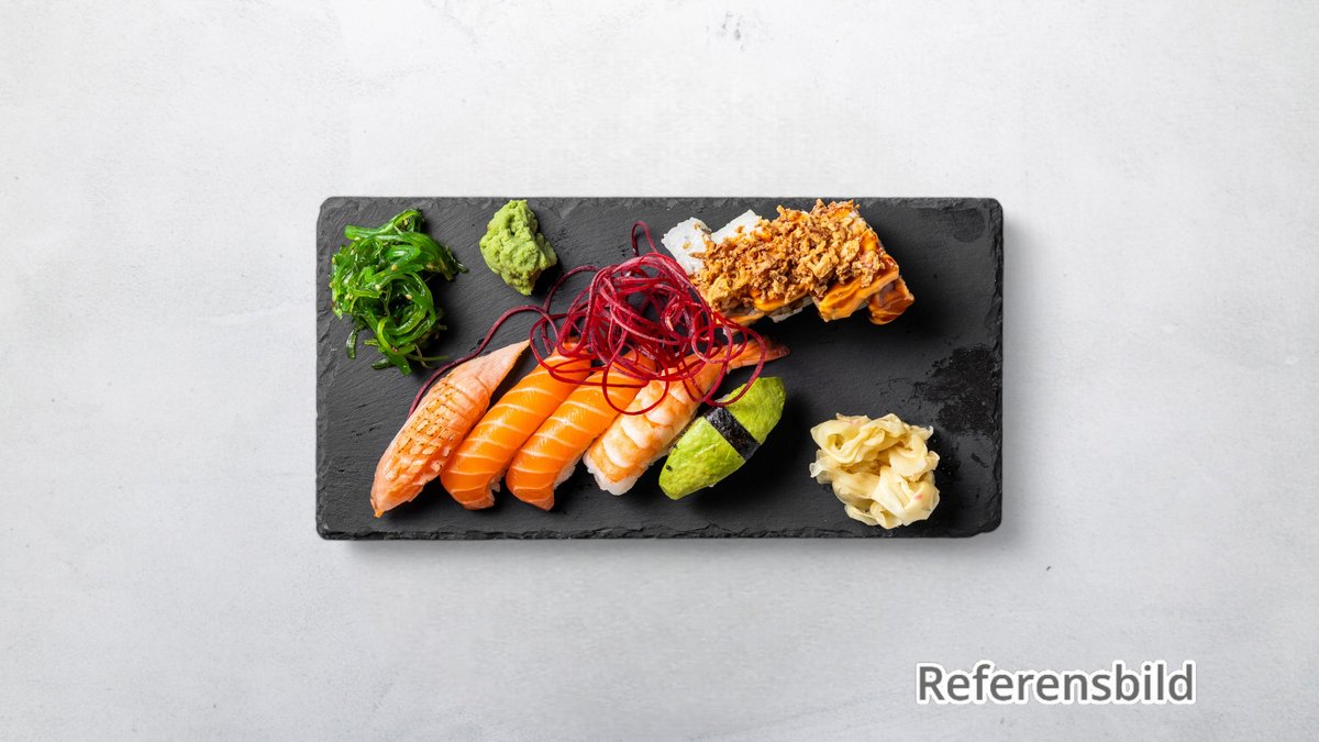 En blanding av lax, räka, nilstilapia, tonfisk, hokimussla, japansk ål och maki. Tillval: Storlek, Extra tillbehör, Dryck