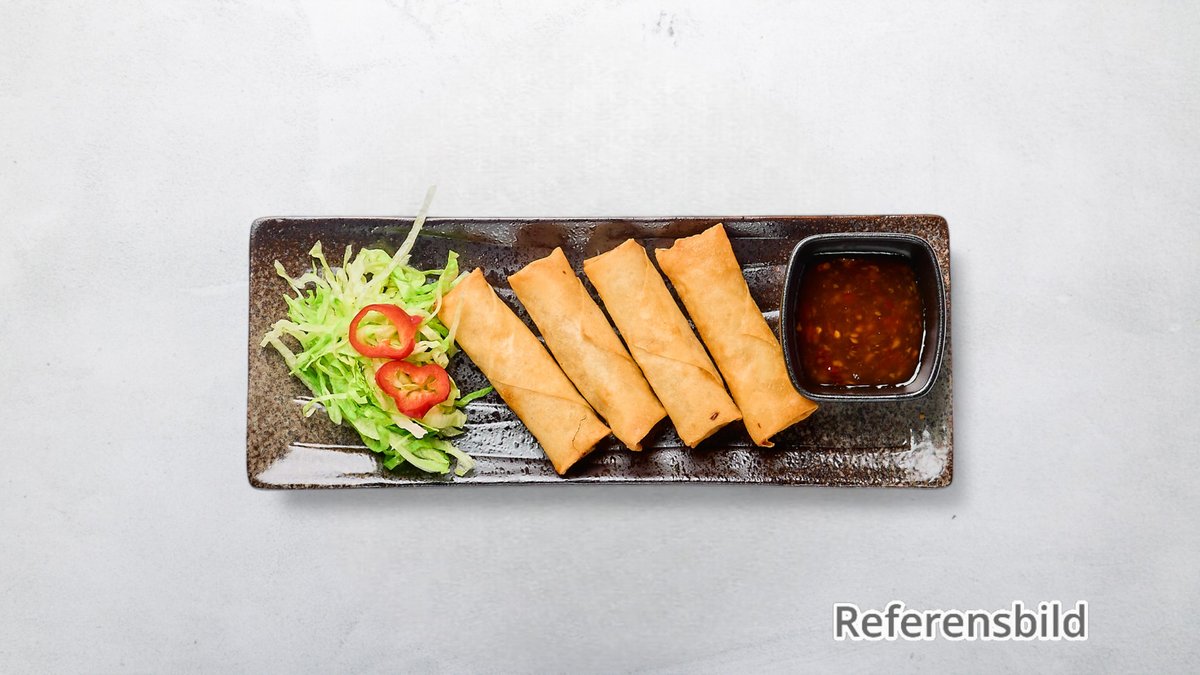 8 st vegetariska vårrullar med grönsaksfyllning, serveras med sweet chilisås. Tillval: Extra tillbehör