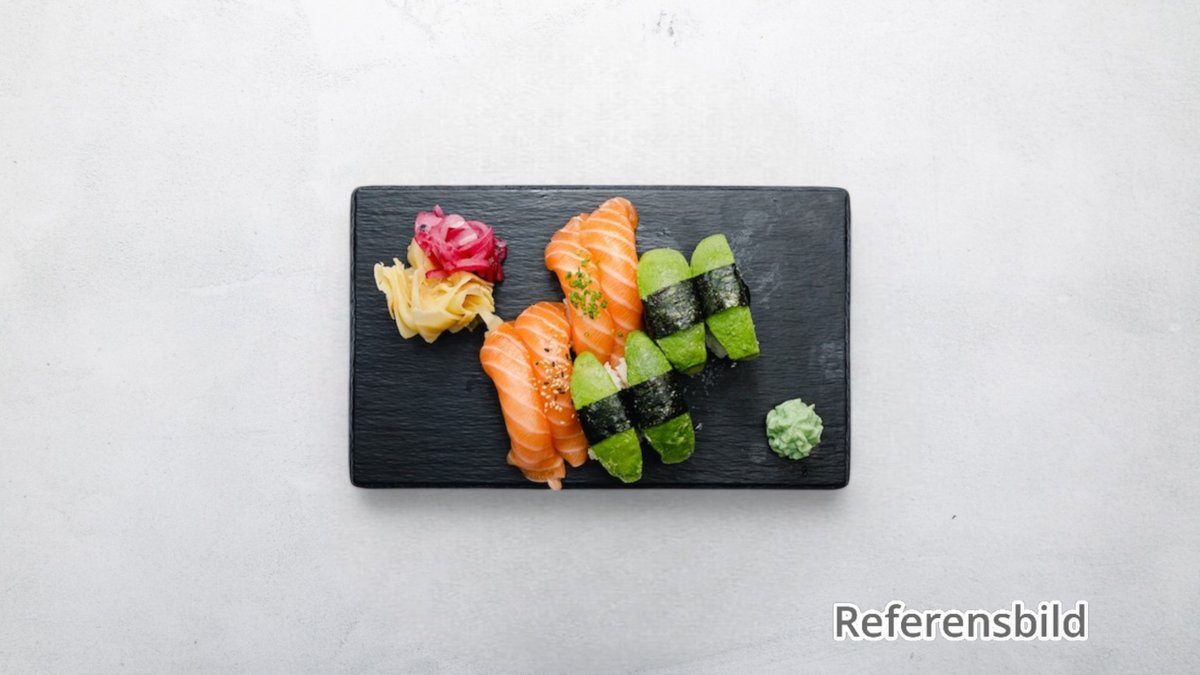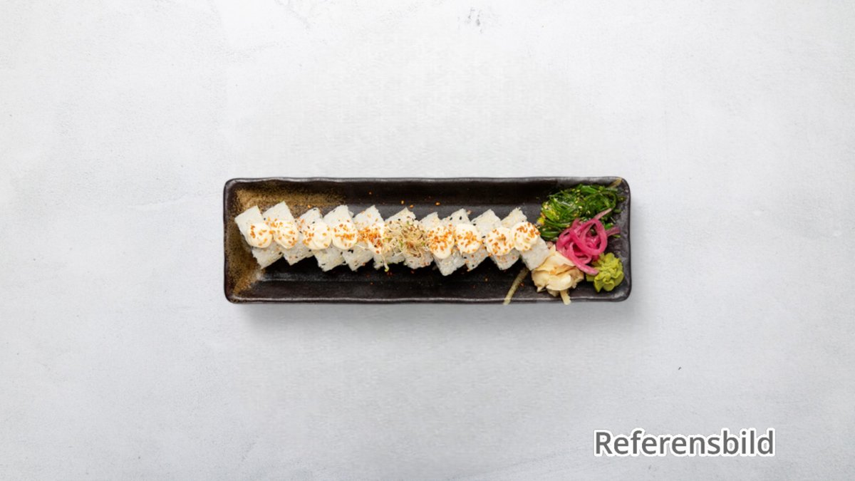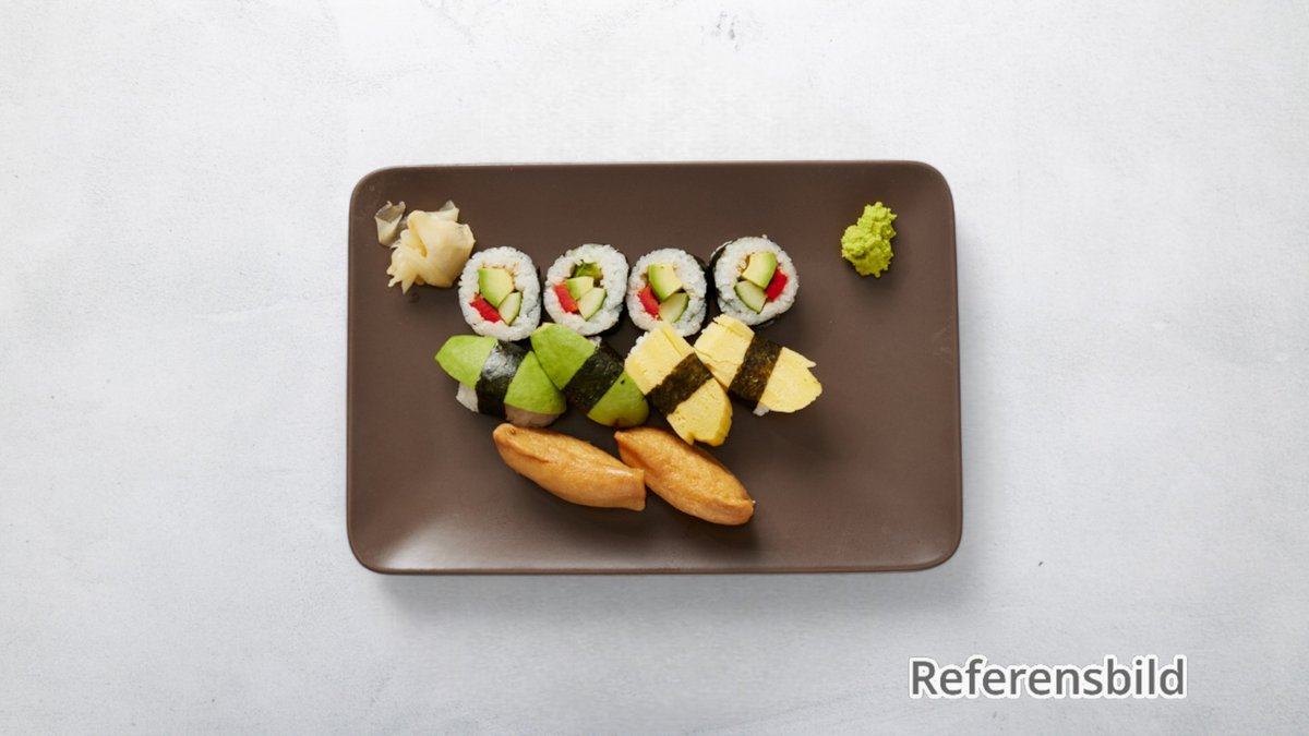 En blandning av avokado, morot, rättika, tofu och maki. Välj antal bitar i nästa steg. Tillval: Storlek, Extra tillbehör, Dryck