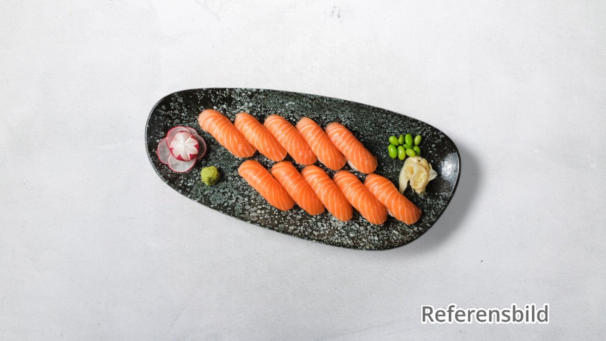 10 lax, 6 grillad lax, 8 räkor, 6 avokado och 10 maki. Tillval: Extra tillbehör, Dryck