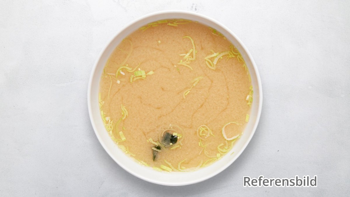 Misopasta, tofu, vårlök, bonito flakes och sjögräs. Tillval: Extra tillbehör, Dryck