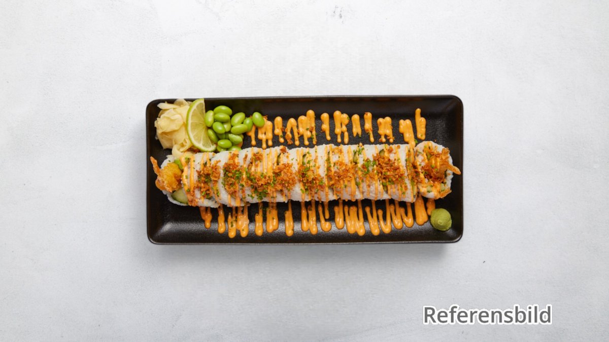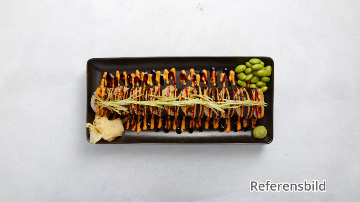 En blandning av avokado, räkor, tofu, morot och maki. Välj antal bitar i nästa steg. Tillval: Antal bitar, Extra tillbehör, Dryck