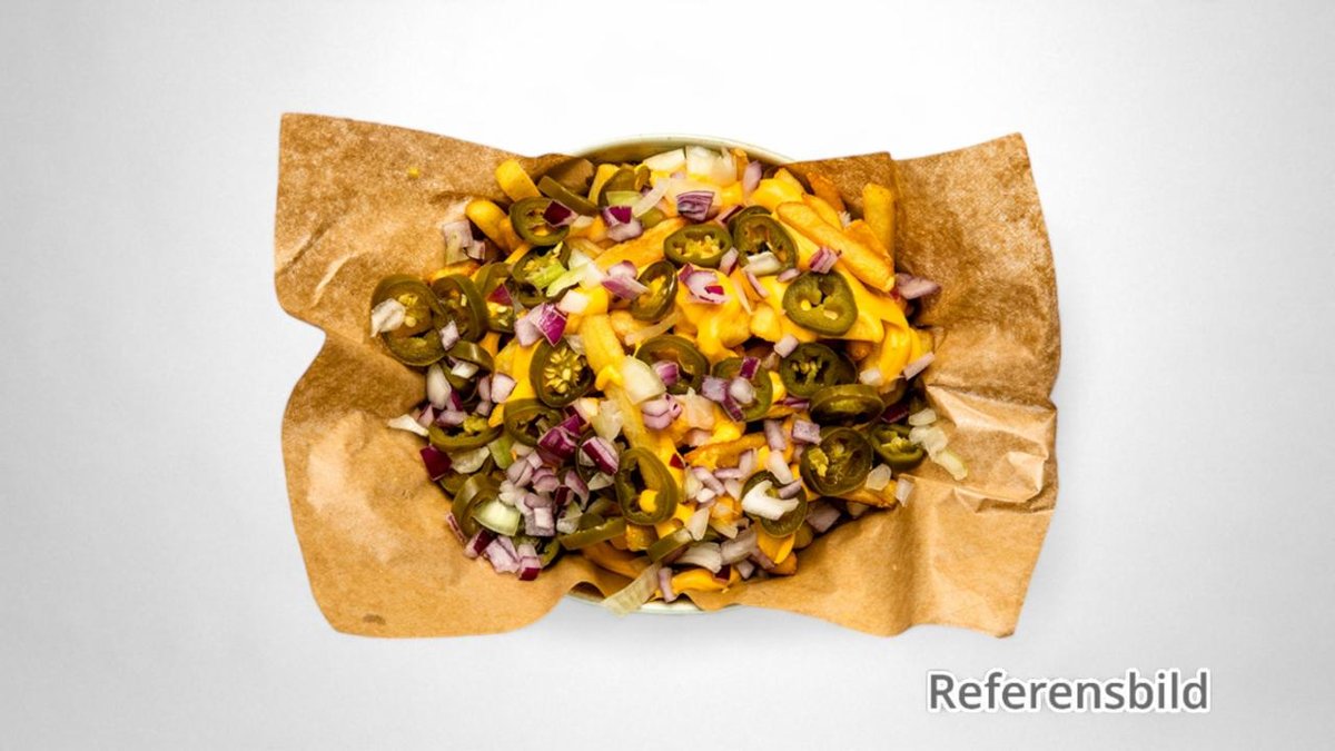 Krispig kyckling, pommes, chili cheese, jalapeños, smält ostsås och chilimajo. Med smält mozzarella ovanpå Tillval: Välj Dryck, Extra Sås?
